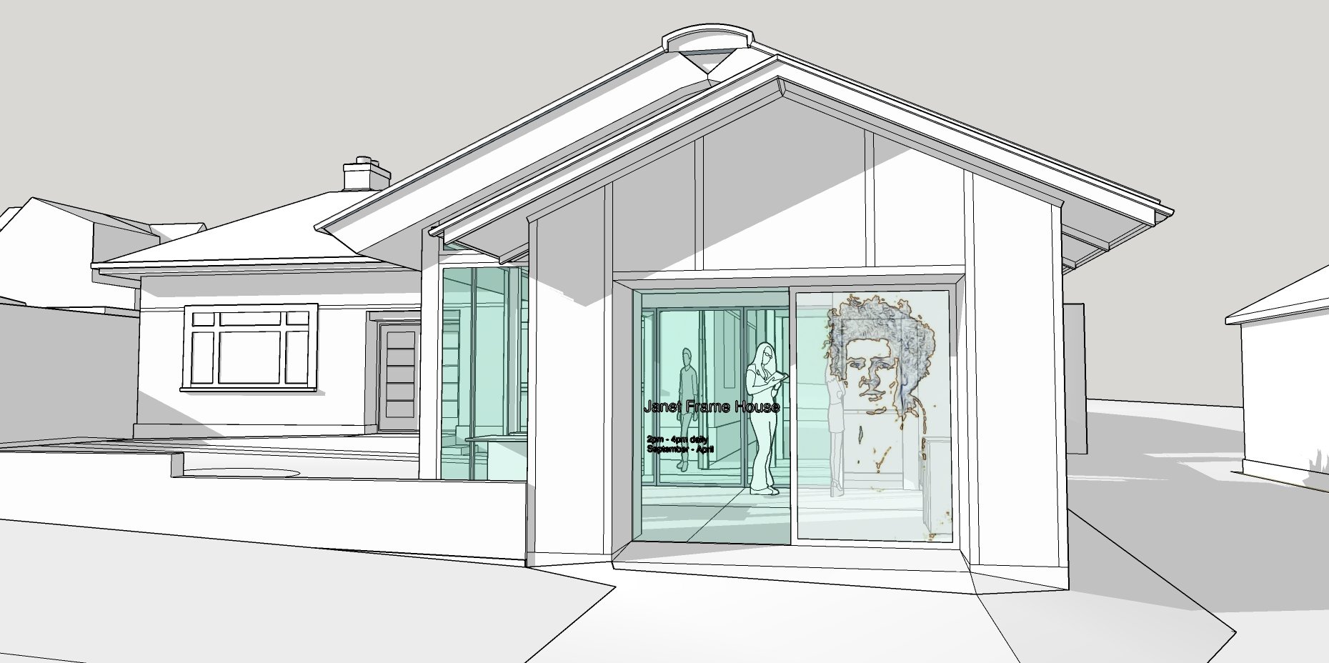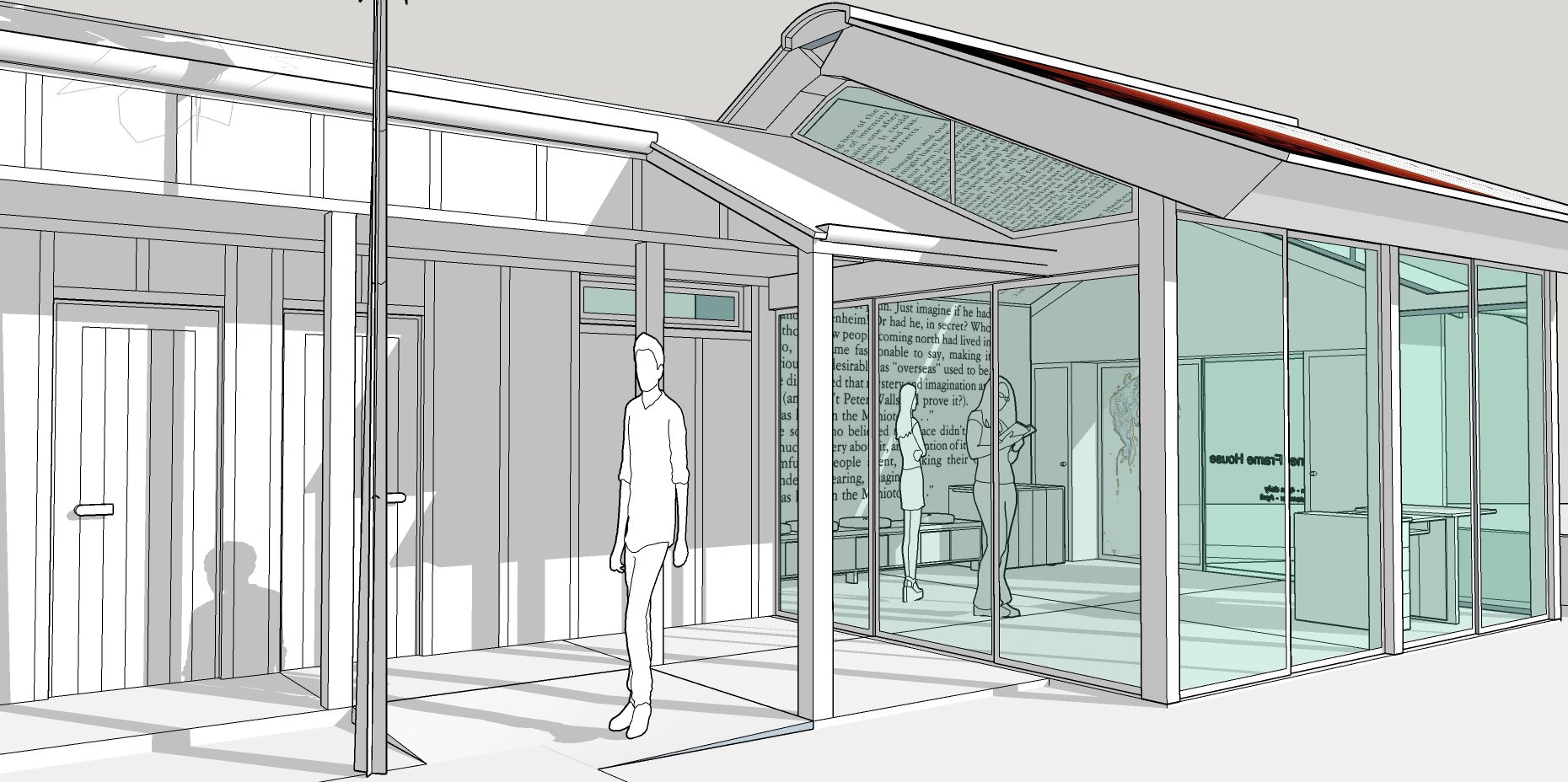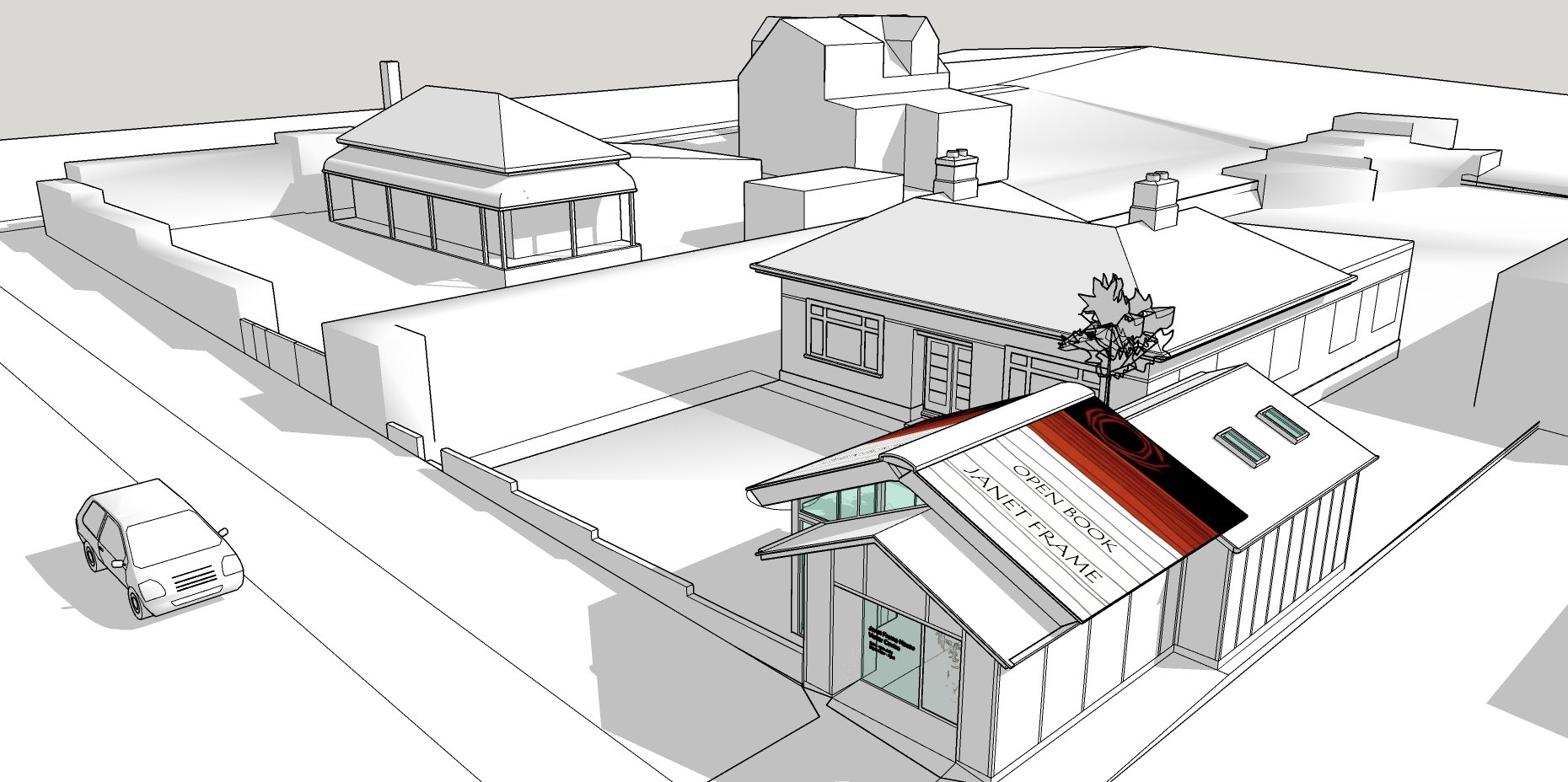 Designed with a roof in the form of an inverted open book in 2023 to provide an immersive experience for visitors to the house in Eden Street Oamaru.